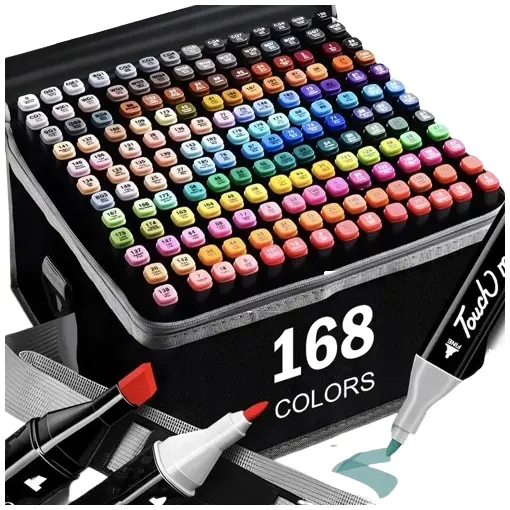 Markery alkoholowe DWUSTRONNE pisaki flamastry duży zestaw 168 szt + TORBA