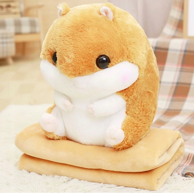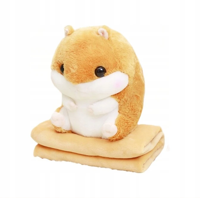 Piękna, dekoracyjna maskotka, przytulanka z kocem w kształcie chomika.