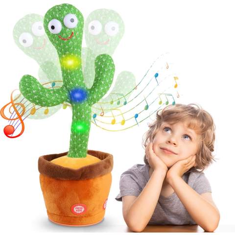 ✅Słodkie i zabawne: Urocza i zabawna pluszowa zabawka w kształcie kaktusa może tańczyć, śpiewać, poruszać się, obracać.