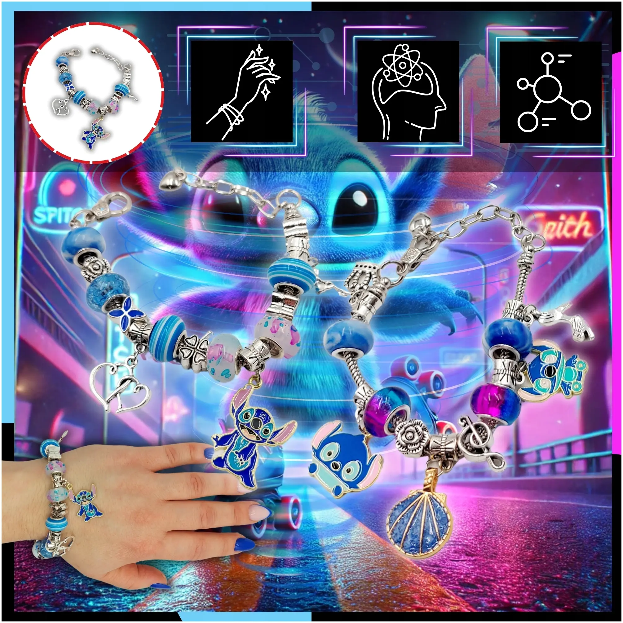 ✅Postać Stitch z Lilo & Stitch ✅Tworzenie Bransoletek i Naszyjników ✅23 Zawieszki + Koraliki ✅Epickie Pudełko ✅Rozwój Kreatywności ✅Idealny Prezent dla Dziewczynki