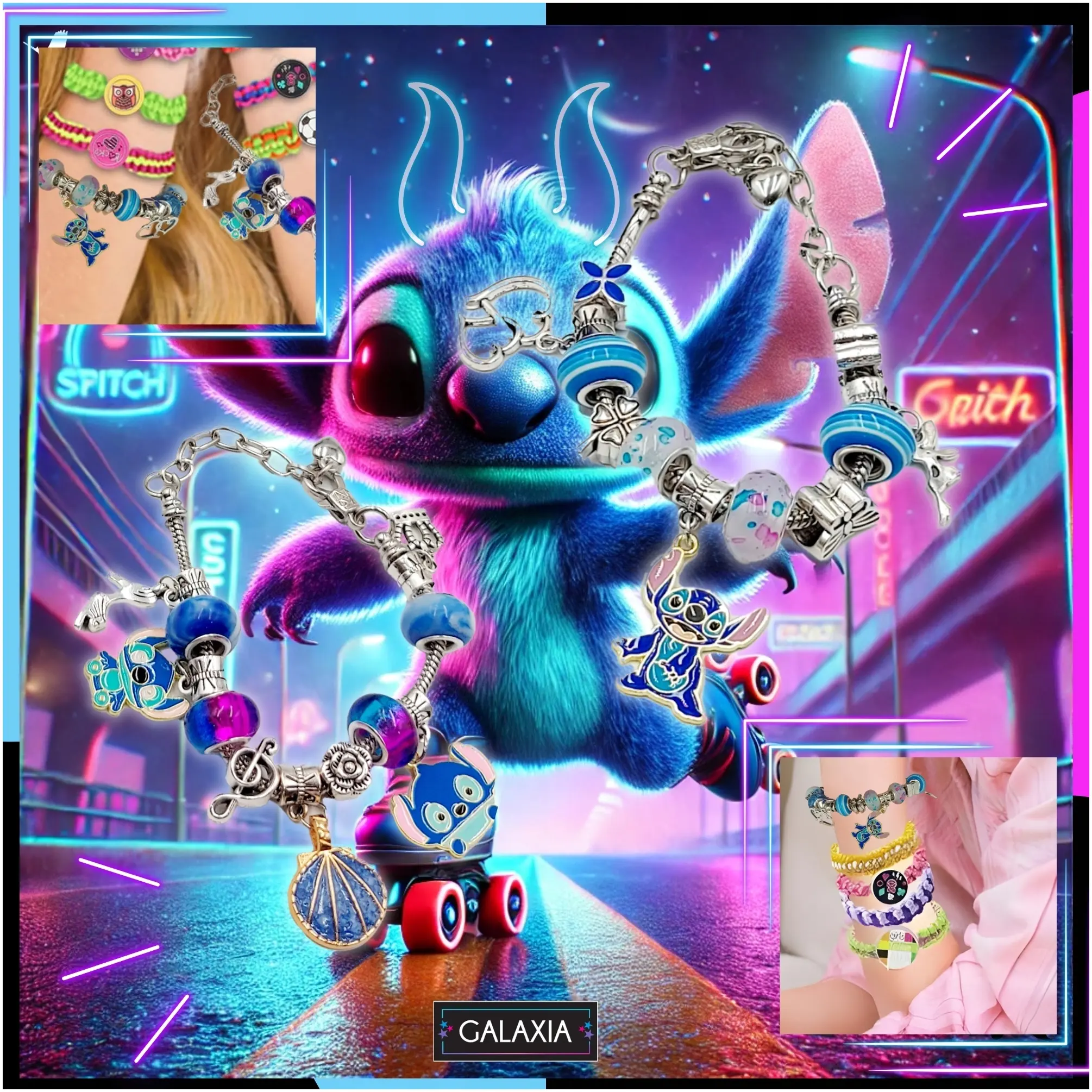 - ➡️ Zawieszki charms (aż 23!) – każda z nich to mały skarb: serduszka, gwiazdki, postacie inspirowane Stitch’em… a może symbol przyjaźni? Każdy znajdzie coś dla siebie!