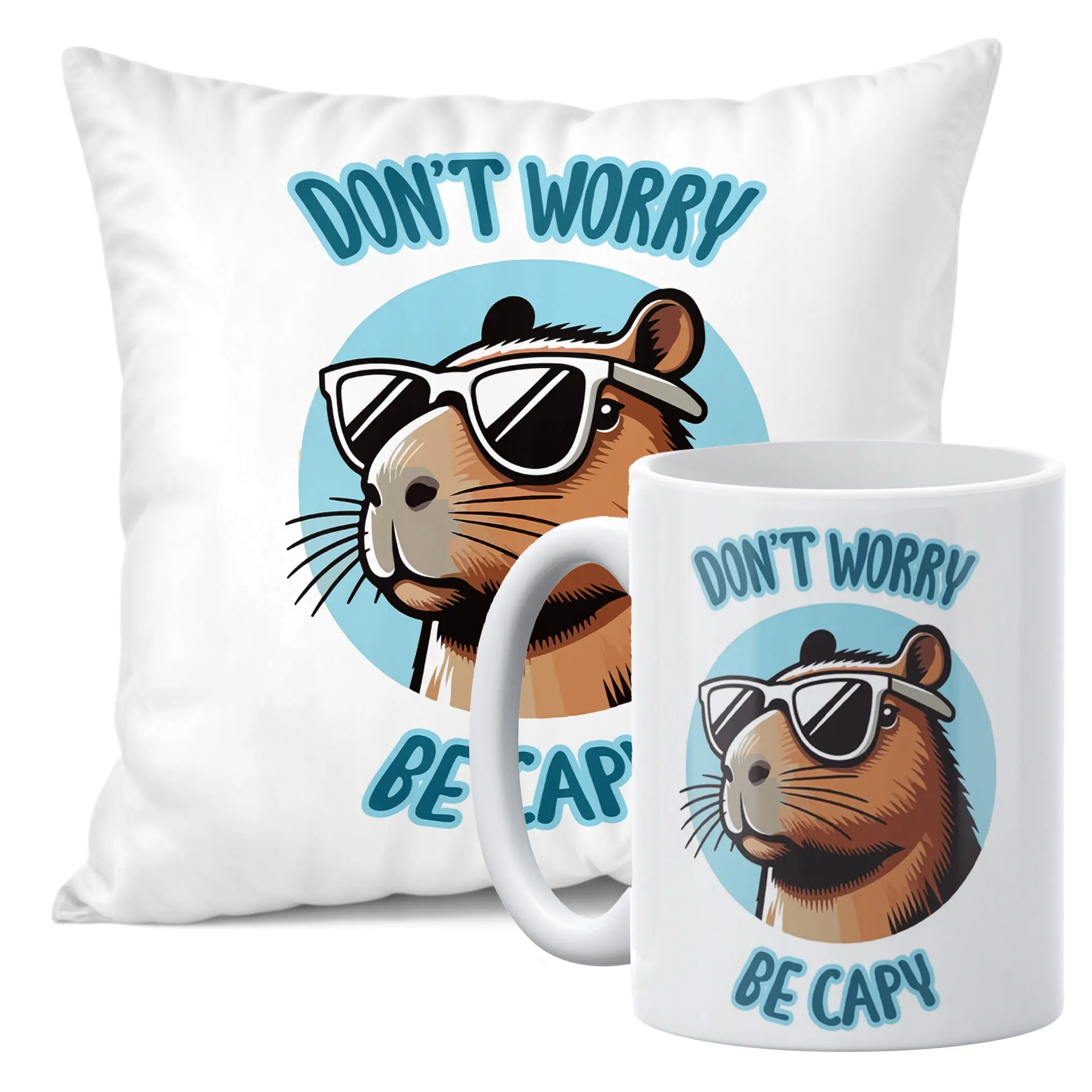 Zestaw Kubek + Poduszka 38x38 cm Kapibara Don't Worry Be Capy