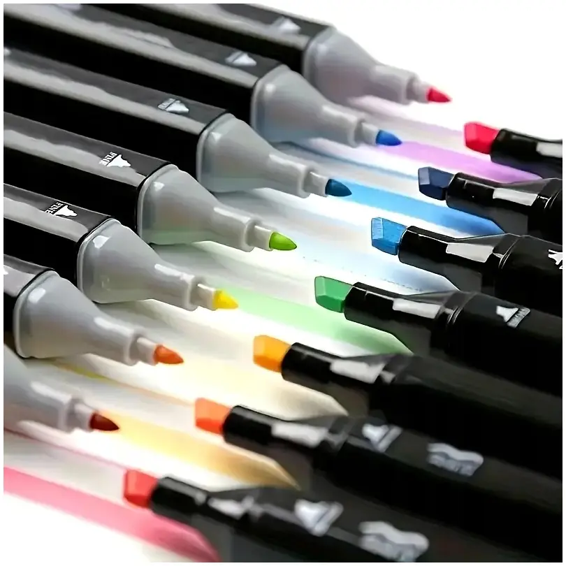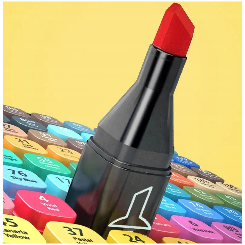 - ✔️ Dwustronne markery – szeroka końcówka do wypełniania dużych powierzchni, cienka do precyzyjnych linii i szkiców